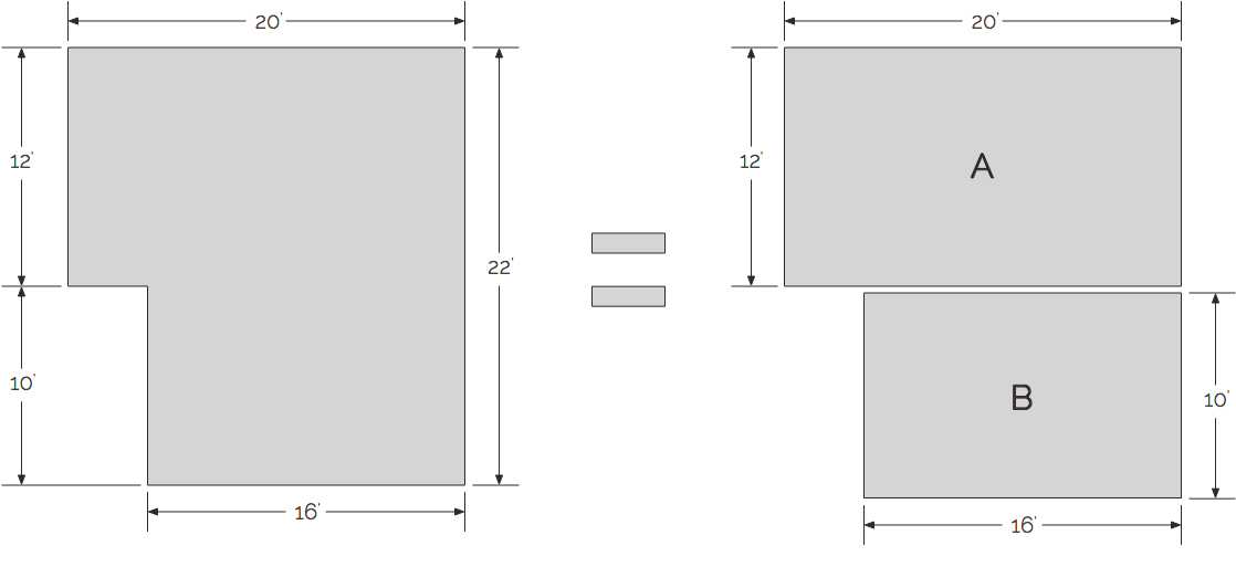 After breaking up the room, measure the length and width of each space you’ve created. We can then multiply the length and the width to get the square footage of each space.